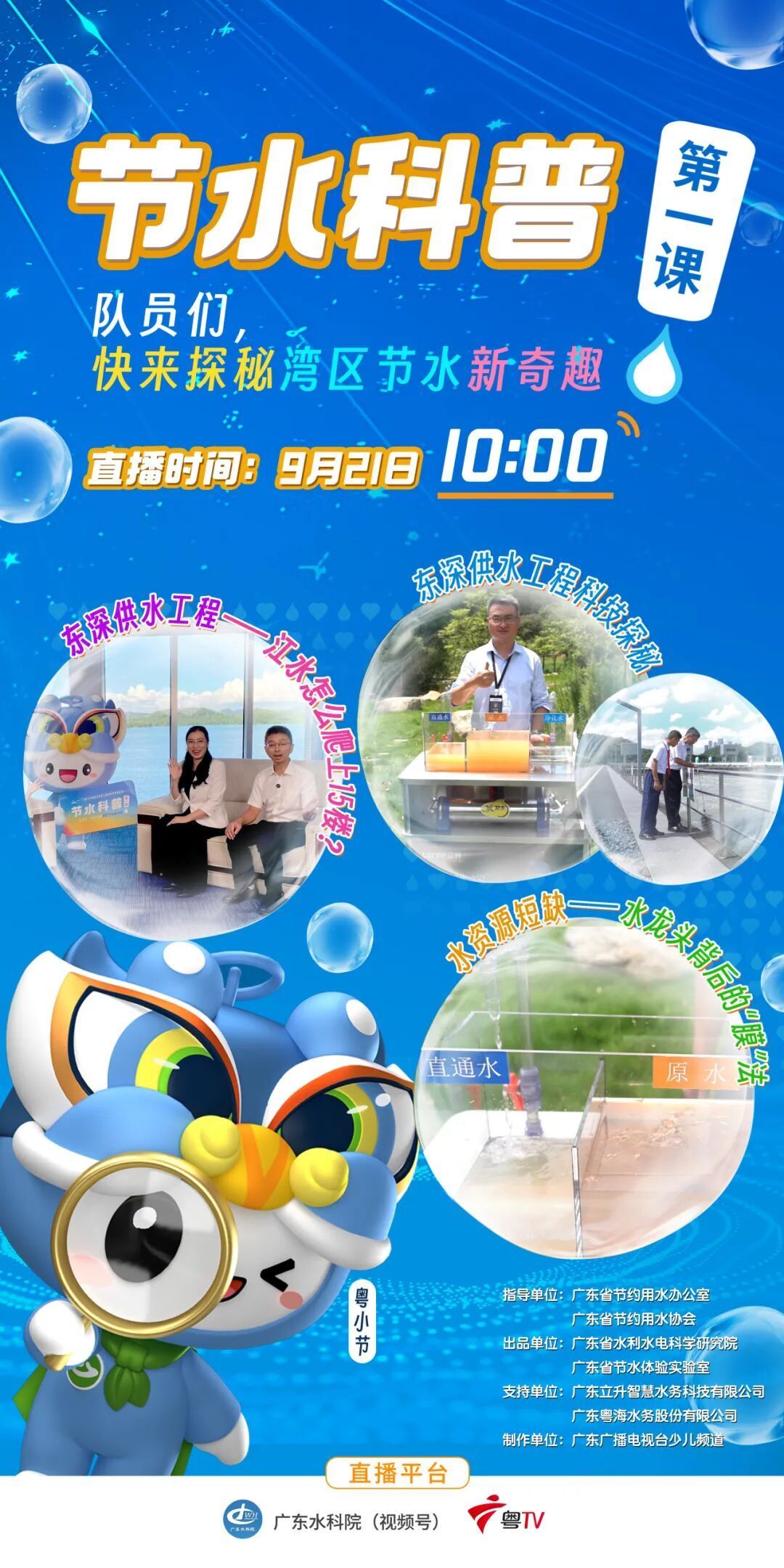 本次直播课上,节水专家、中小学生代表和广东节水形象代言人粤小节将带领观众,聊聊东深供水历史与新科技、去深圳水库了解生物硝化工程的意义与科研攻关,去立升博罗县水站认识超滤膜科技。