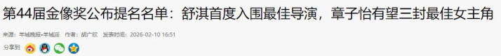 羊城晚报-2026-02-10——《第44届金像奖公布提名名单:舒淇首度入围最佳导演,章子怡有望三封最佳女主角》